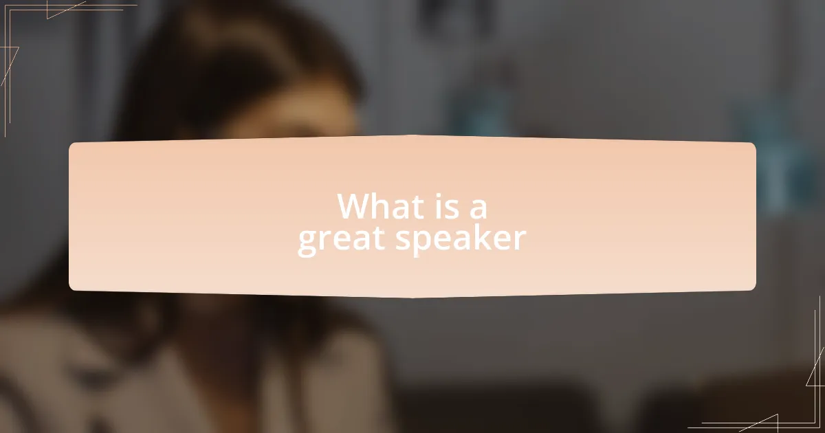A great speaker captivates their audience through authenticity and passion. I still remember attending a conference where the speaker shared a personal story about triumph over adversity. It wasn’t just the content; it was the vulnerability in their voice that drew me in. Have you ever noticed how a heartfelt story can transform a presentation?